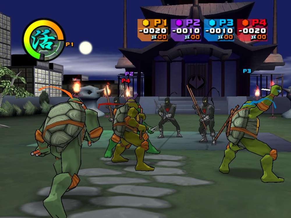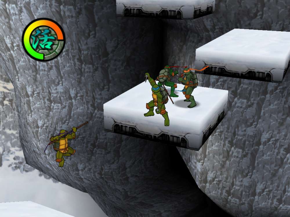 The Teenage Mutant Ninja Turtles return--this time featuring simultaneous play for up to four players. In both cooperative and head-to-head modes, you and your friends can play as your favorite green heroes: Leonardo, Michelangelo, Donatello, and Raphael. Punch, kick, and duck your way through battles against The Shredder and his evil pack of Foot Ninjas. Each Turtle has distinct characteristics and abilities, and you can combine moves to perform more than 30 different types of attacks.